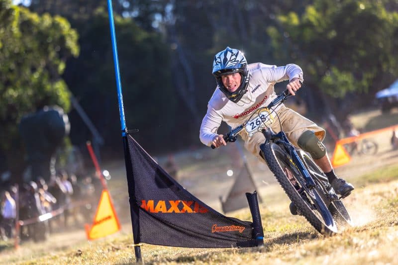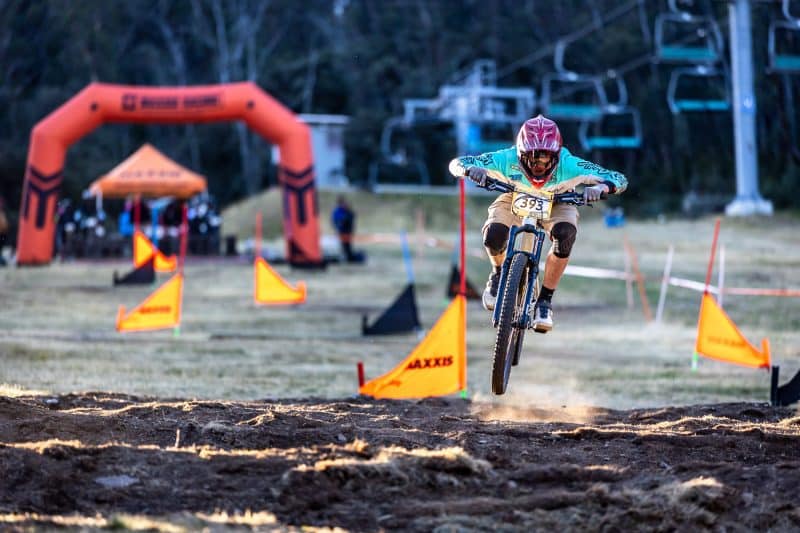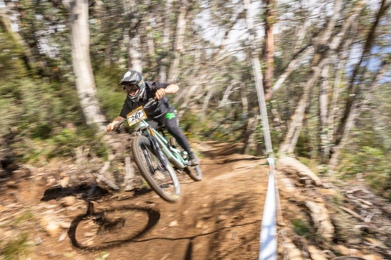 Flow track is probably my least favourite track of the event. It’s still great fun, but I prefer shooting the other tracks on the mountain. I think it’s because I have been shooting on this track almost from day 1 working as Outer Image way back in the days when shooting for Rocky Trail, and now shooting this trail Cannonball and Interschools for maybe 10 or 11 years. I do struggle a bit to find fresh dynamic angles. Thankfully, Thredbo MTB are on it. They add new bits every so often, and I usually make a b-line straight for those. Nothing new this year that I saw, but there were still a couple of new corners from last year that I hadn’t visited.