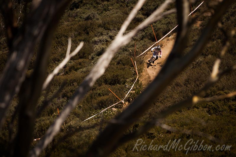 Sunday saw the start of the DH season for us. Many familiar faces were out on track along with a lot of new ones. This time Gil and I swapped, me heading up top and Gil walking from the bottom. A cool breeze right up top meant I didn’t linger too long but quickly headed down to warmer climes. I tried revisiting a couple of old favourites on the way down but wanted to shoot a new location. I settled in on a corner and the trees just above Snakes and Ladders and spent most of the race there just trying different angles.